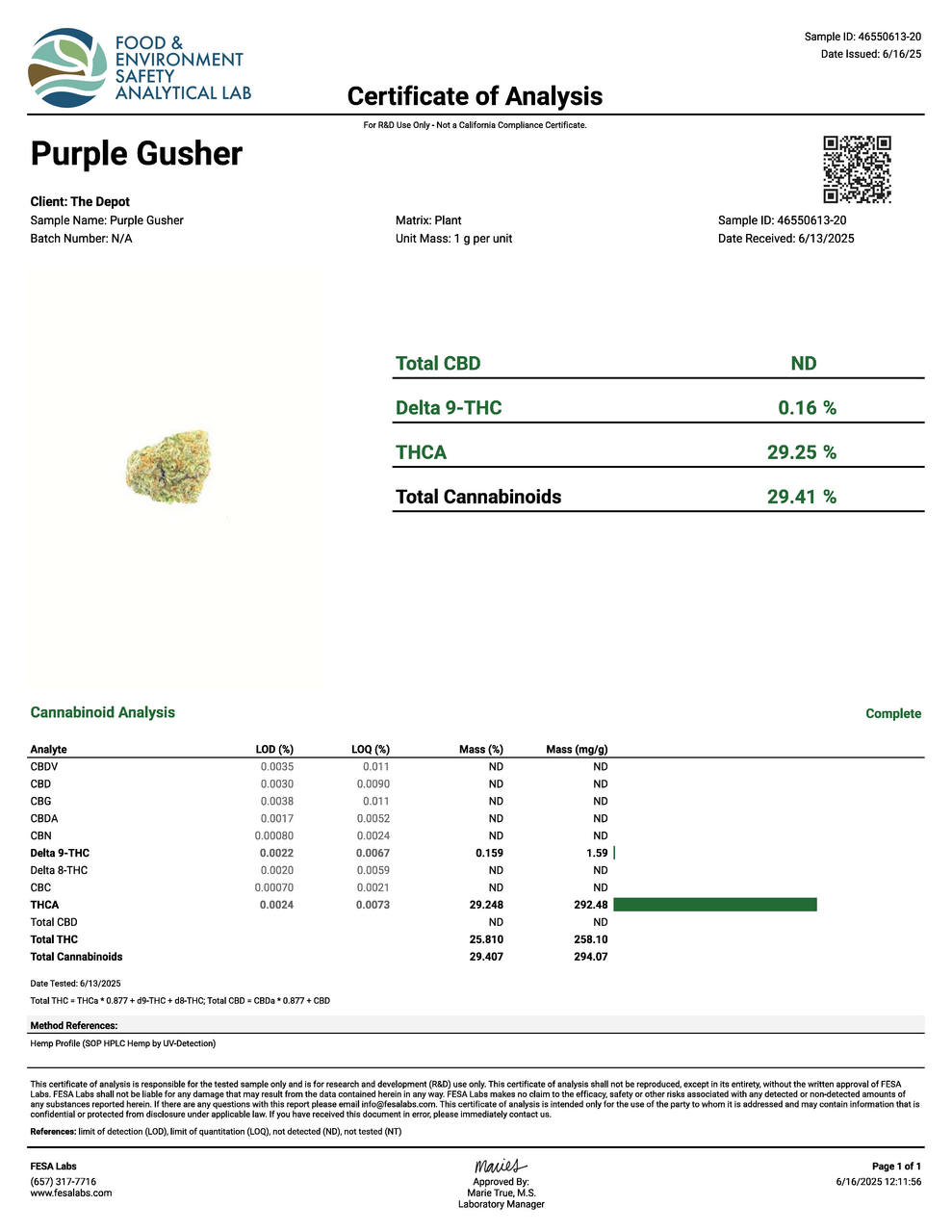 Purple Gushers, also known as “Purple Gusher,” is an evenly balanced hybrid strain created by crossing Purple Punch & Gelato strains. It's best known for its amazing flavor and gorgeous appearance.
